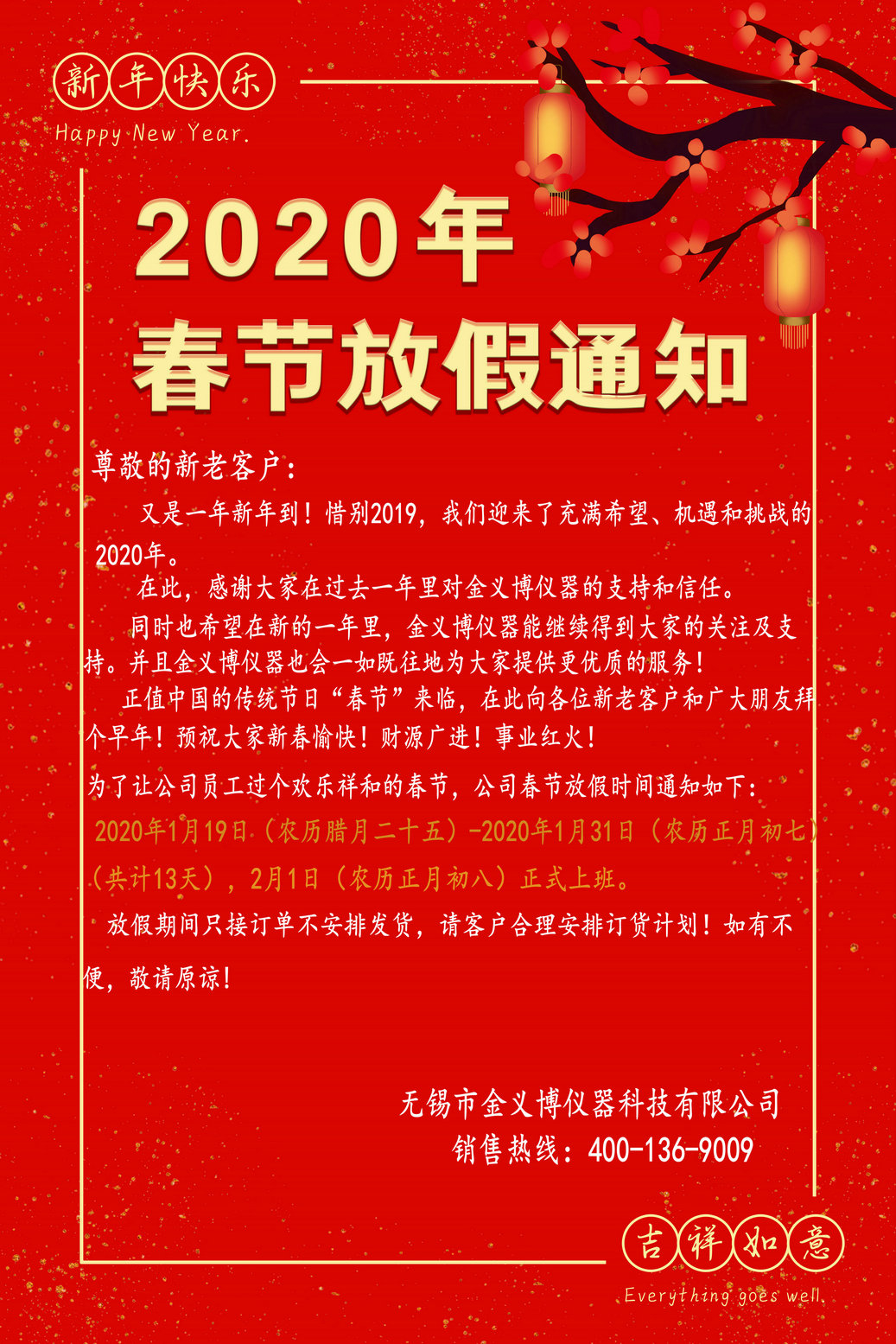 2020年春节放假通知